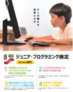 この検定では、2Dゲームを作成できるビジュアルプログラミング教材「Scratch(スクラッチ)」を使って、小中学生のプログラミングスキルを測ります。