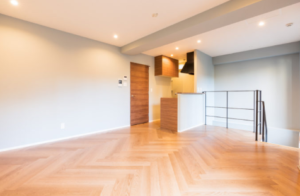 床はヘリンボーン調で柄がしっかり主張しつつ、